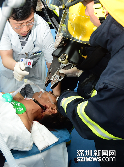 消防員和醫療人員消防員齊上陣,先行將傷者的顱外鋼筋切除