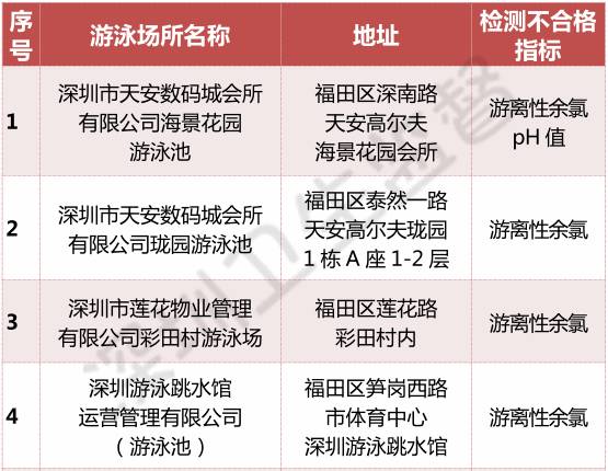 第一批游泳場(chǎng)所水質(zhì)抽檢結(jié)果不合格單位