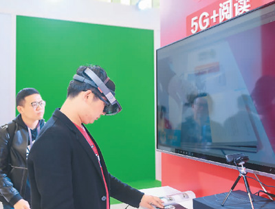 觀眾在數(shù)字閱讀發(fā)展與技術博覽會上體驗5G+閱讀。 新華社記者 黃宗治攝