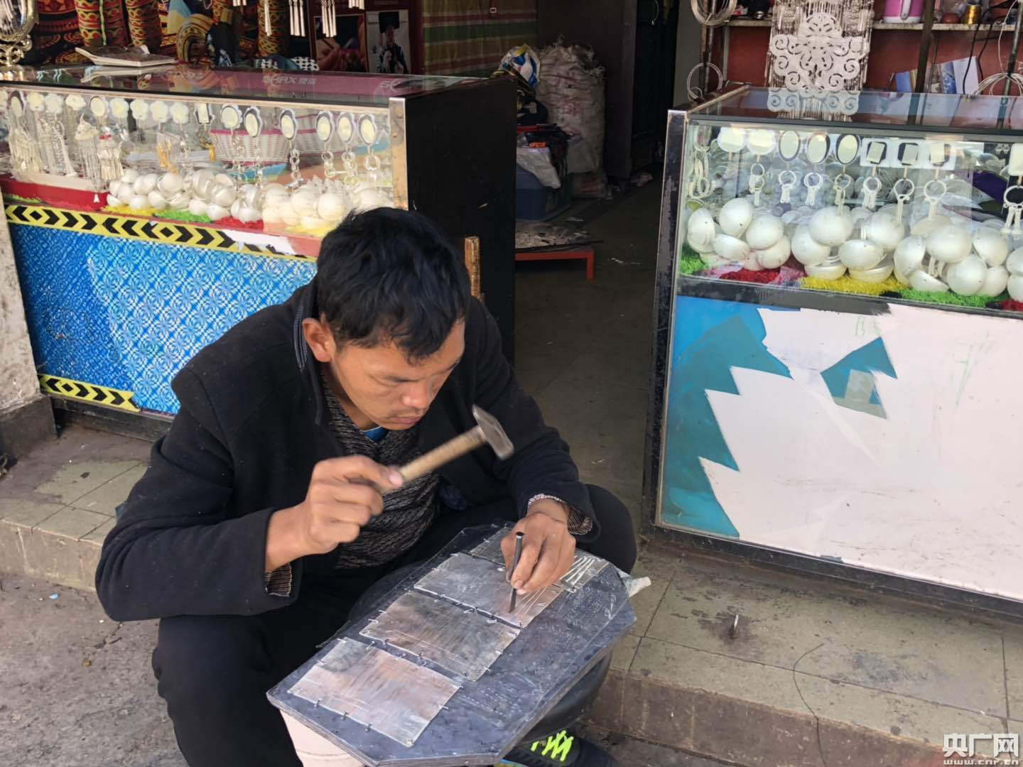 在布拖縣城有一條著名的銀器街,兩旁布滿銀飾店鋪,錘子擊打銅鏨子發出的“叮叮當當”聲不絕于耳,銀飾工匠們就在這里日復一日地用自己的雙手把時光、歲月打制進件件銀器中。