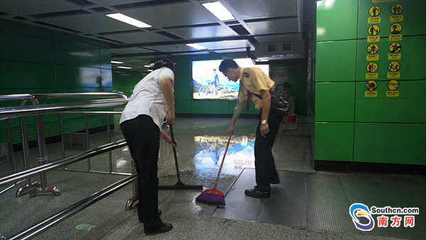 據(jù)南方網(wǎng)報道,7月17日下午,廣州地鐵3號線客村站站臺內(nèi)發(fā)生漏水。據(jù)現(xiàn)場目擊者江女士稱,漏水點位于該站3號線與8號線夾層間的一間房屋,水從房間門縫流出后,經(jīng)天花板落至3號線候車月臺,乘客乘車受到影響。“車站里好像下雨一樣。”江女士稱。目前,臨近流水點的扶梯已經(jīng)停運,漏水原因仍在調(diào)查中。