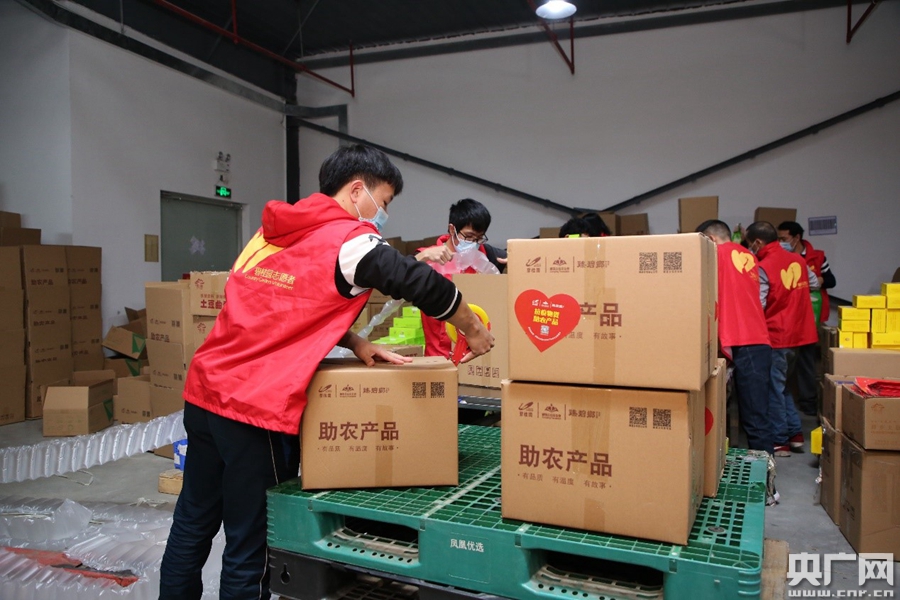 工作人員打包物資。(央廣網發)