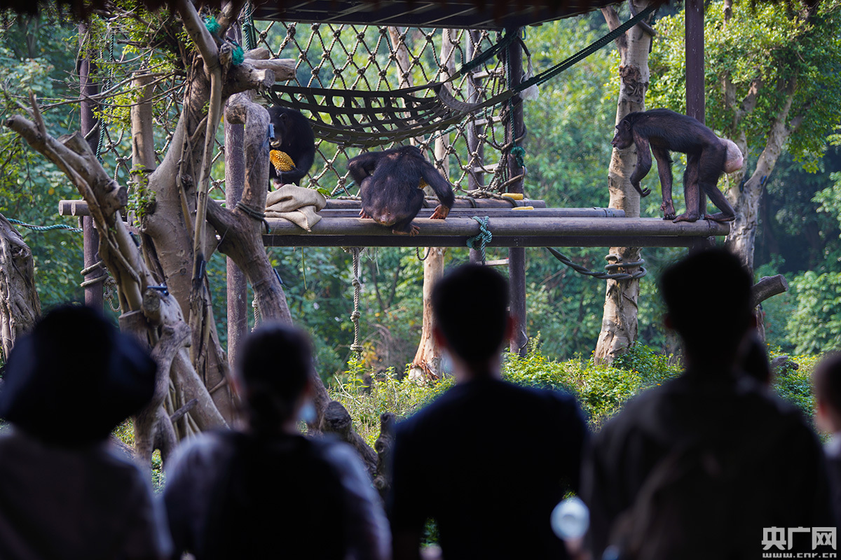 游客在參觀豐容后的黑猩猩。(央廣網(wǎng)記者 官文清 攝)
