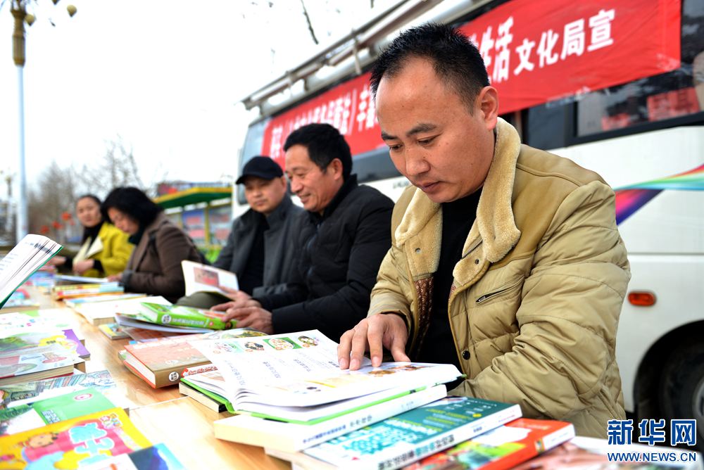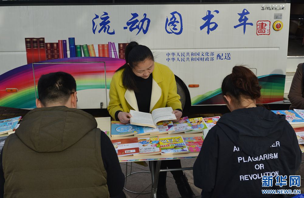 3月1日,市民在河南省夏邑縣長(zhǎng)壽廣場(chǎng)流動(dòng)圖書(shū)車(chē)前免費(fèi)閱讀圖書(shū)。河南省商丘市夏邑縣圖書(shū)館開(kāi)展“圖書(shū)到廣場(chǎng)、送社區(qū)、入鄉(xiāng)村”活動(dòng),利用流動(dòng)圖書(shū)車(chē)將政治、經(jīng)濟(jì)、科技、文化、教育、生活等各類圖書(shū)送到廣場(chǎng)、社區(qū)、鄉(xiāng)村,供城鄉(xiāng)居民免費(fèi)閱讀。新華網(wǎng)發(fā)(苗育才 攝)
