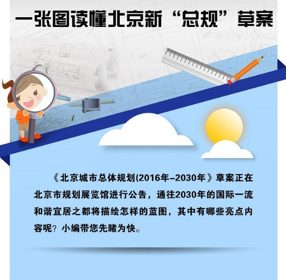 今日,市規劃國土委發布通知,《北京城市總體規劃(2016年-2030年)》草案已經編制完成,依據相關法規,為充分征詢和吸納公眾意見,從即日開始,在北京市規劃展覽館一層展廳對草案進行公告。