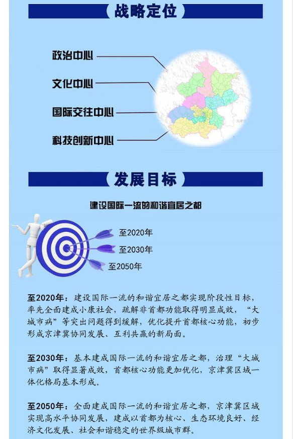 從3年前開始,新一版北京城市總體規劃就進入了編制階段。市規劃國土委相關負責人表示,此次北京城市總體規劃提出落實城市戰略定位,明確發展目標和城市規模,是站在新的歷史起點上,對黨中央、國務院重大戰略部署和做好首都各項工作指示的具體落實,凝聚了新中國成立以來的60多年北京城市發展實踐經驗的總結,體現了重大轉折期首都發展的新理念、新要求、新期待。