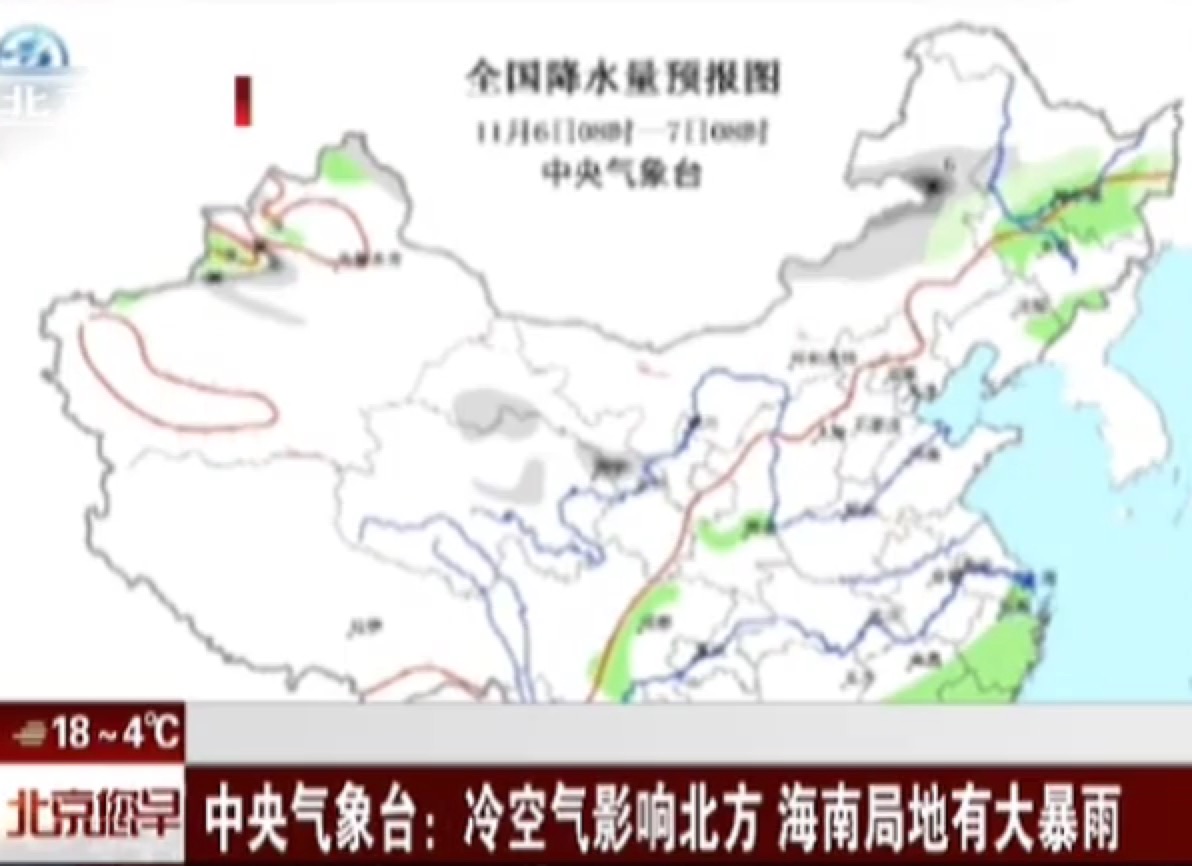 冷空氣影響北方 海南局地有大暴雨