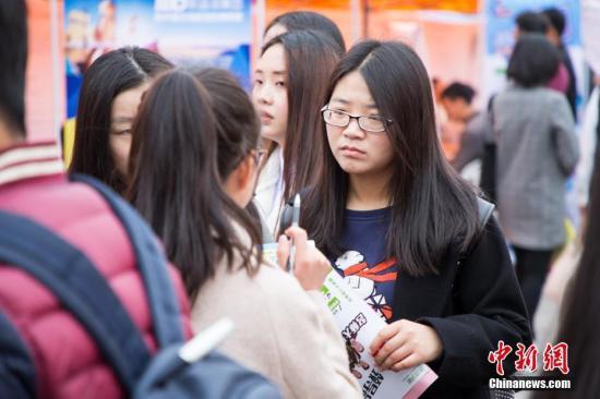 圖為求職者在認真了解用人單位相關情況。 李南軒 攝