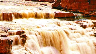 伍拾圓背面是黃河壺口氣勢宏偉的風景。壺口瀑布是黃河流域的一大奇觀,它是中國第二大瀑布。壺口位于陜西省宜川縣與山西省吉縣交界處。黃河流至壺口時,寬約400米的河床突然收縮到四五十米,河水奔騰傾瀉而下,猶如從一巨型壺口傾倒出,所以起名“壺口”。由于河水的侵蝕作用,壺口瀑布每年都會向上游移動一小段距離,現(xiàn)在伍拾圓紙幣上這個場景,幾百年后會永遠地消失在咆哮的黃河水中。