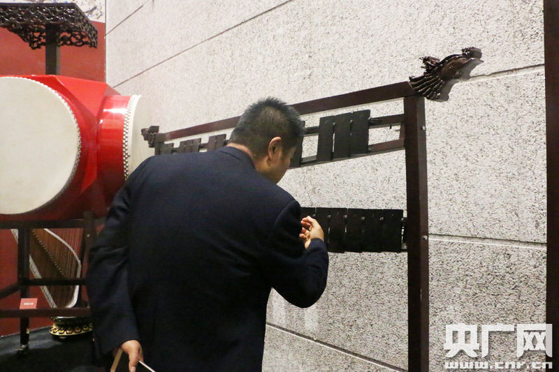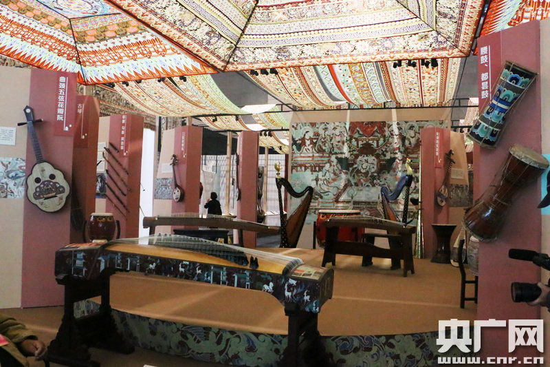 壁畫仿制樂器展出。 (央廣網(wǎng)記者 張喬 攝)