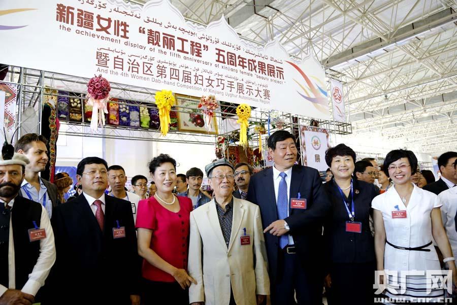 王蒙、史大剛等領導和國內外嘉賓參觀新疆女性“靚麗工程”五周年成果展暨新疆第四屆婦女巧手展示大賽(央廣網記者 張雷 攝)