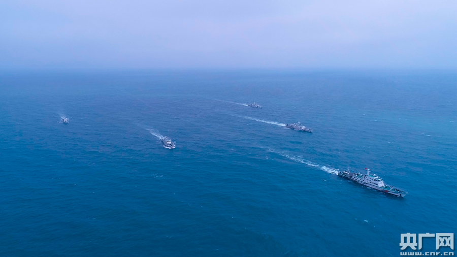 圖為汕頭海警局艦艇艦艇人字隊型航行(央廣網發 汕頭海警局供圖)
