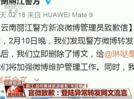 隨后,麗江警方微博管理員緊急刪除了該條微博。并于昨天凌晨在微博上發布致歉信,指出警方官方微博登陸出現異常現象,轉發博文不代表官方立場。