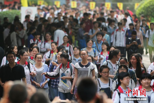 資料圖:2016年6月9日下午,大批考生從南京一處高考考點內輕松走出。中新社記者 泱波 攝