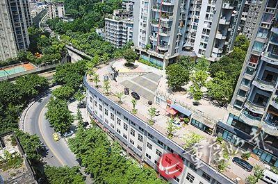 記者探訪:這條路實為南岸區南濱路聚豐江山里小區道路,位于該小區3棟附近。重慶晚報記者看到,屋頂公路寬約10米,與樓下往彈子石方向的主干道海棠溪新街呼應,靠樓的一側是小區車庫出入口,遠觀有種樓上樓下皆有路的感覺。小區一位保安表示,這條路的下面是小區的車庫,車庫下是商鋪。