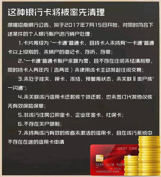 招商銀行的清理方式是銷戶,但要滿足7大條件:
