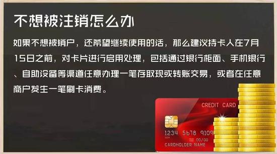 招商銀行工作人員提醒,如果持卡人仍需要使用該賬戶,可于7月15日前存款或轉賬。