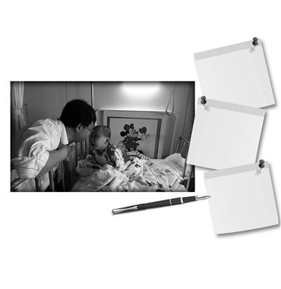 他說,寫了1009篇日記,最難的是兒子腿部感染那階段。開刀做手術,因為病情,不能打麻藥,術后換藥,兒子撕心裂肺的哭聲讓他們心如刀割。兒子做“腰穿”,整個身體弓起來,像只大蝦一樣,他們的內心除了難受,還是難受。