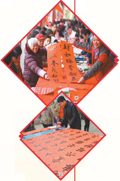 圖①:書法家為江西贛州群眾送去春聯(lián)。 陳地長攝