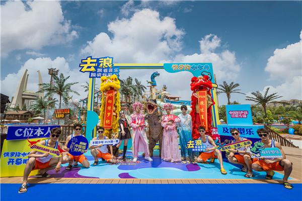6月12日上午,一場國潮盛宴,點燃了侏羅紀水世界開幕的現場氣氛。京劇少年著花旦扮相,帶領國潮情侶、古風少年、lolita 少女開啟潮流碰撞的潮玩現場,更有醒獅,健身達人參與水世界項目挑戰。