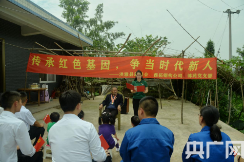 央廣網北京6月22日消息(記者 陳祥銳 通訊員 朱小根 林國強)黨旗迎風飄揚,黨徽金光閃耀。6月21日,在四川省眉山市洪雅縣余坪鎮黃里村1組,光榮在黨69年、百歲老人、志愿軍老戰士宋加銀家里,由洪雅縣余坪鎮黨委政府、洪雅縣新聯會愛心企業四川西拓鋼構公司、博苑幼兒園黨支部聯合開展的“傳承紅色基因,爭當時代新人”活動,老黨員、青年黨員、新階層代表和少年兒童歡聚一堂,追憶紅色歲月,同慶黨的生日,一起過政治生日。