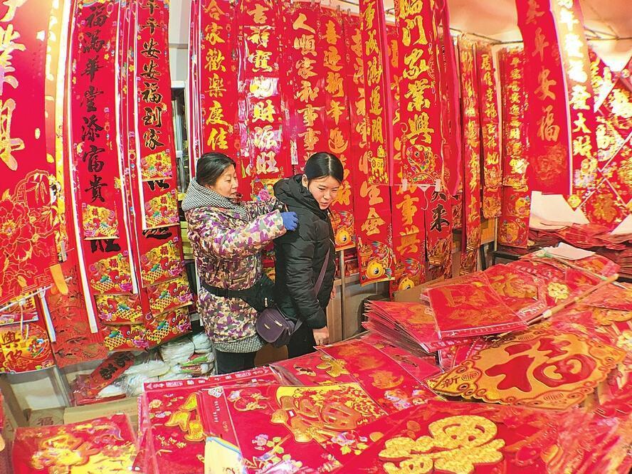 2月1日,太原一小商品市場(chǎng)內(nèi),市民正在挑選春聯(lián)。隨著春節(jié)臨近,太原市節(jié)日氣氛日益濃厚,充滿傳統(tǒng)年味的節(jié)慶用品成為人們購物的首選。