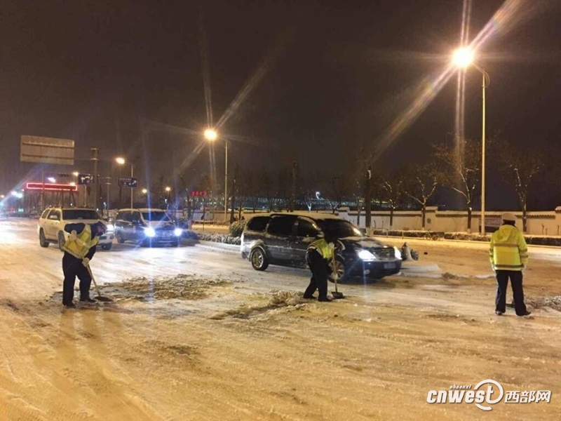 降雪致西安大部分城市道路結冰,多路段實施交通管制。 -