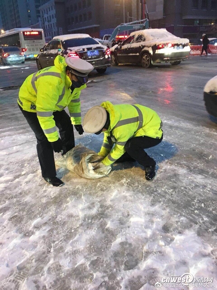 降雪致西安大部分城市道路結冰,多路段實施交通管制。