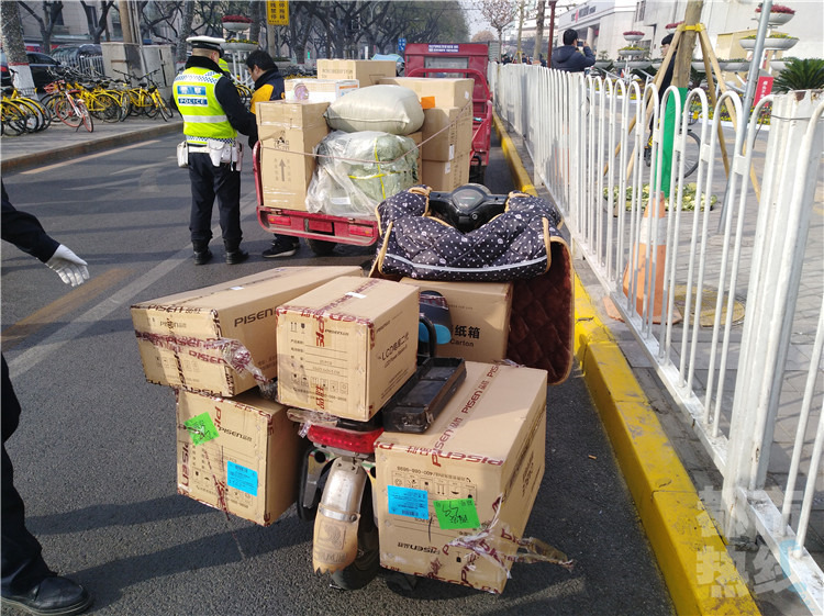 在現(xiàn)場,多輛兩三輪電動車都是因?yàn)檫`法拉貨,不按規(guī)定上路行駛,被交警查扣了。同時,交警對兩三輪電動車的整治會持續(xù)進(jìn)行,違法必被查。