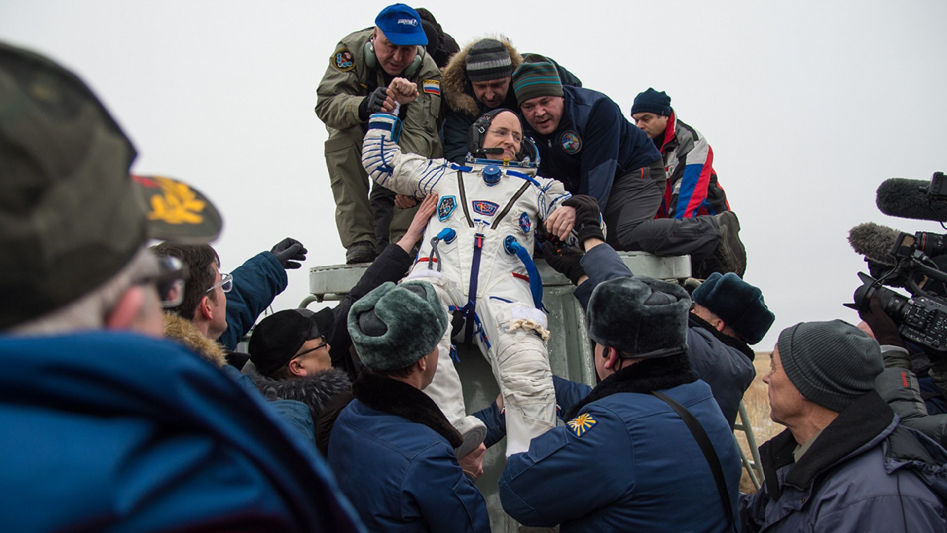 圖為斯科特 凱利完成長達一年的太空站任務后,離開熱茲卡茲干機場 -