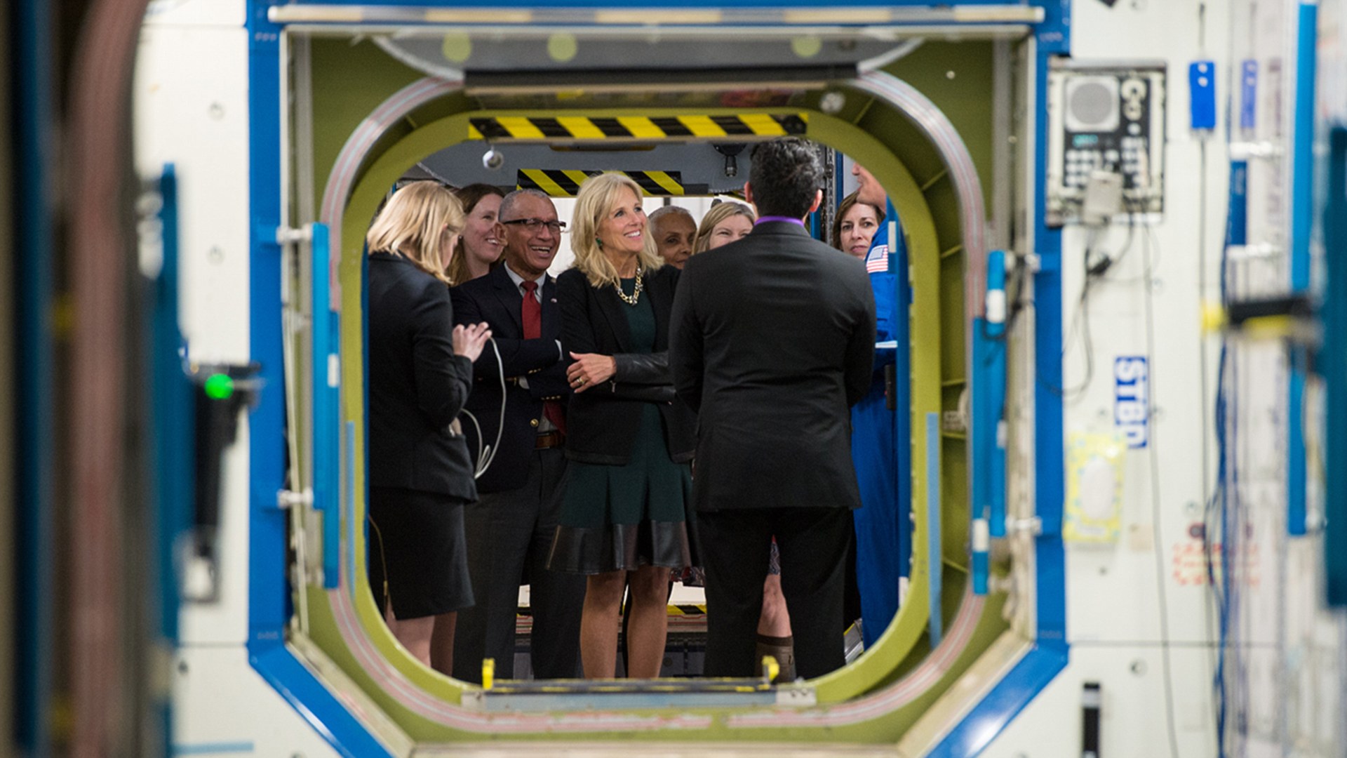 NASA管理員查爾斯 博爾登(左)、副總統妻子吉爾 拜登(右)于3月參觀國際空間站實體模型 -