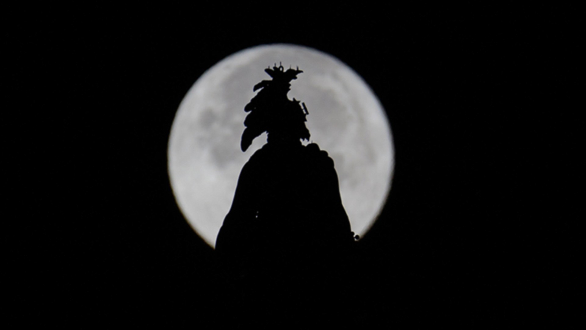 圖為2016年11月14日超級月亮下的自由女神像