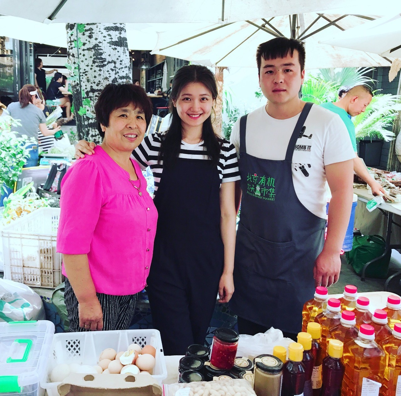 在北京有機農夫市集幫陳子彧和陳媽媽王新英賣農產品